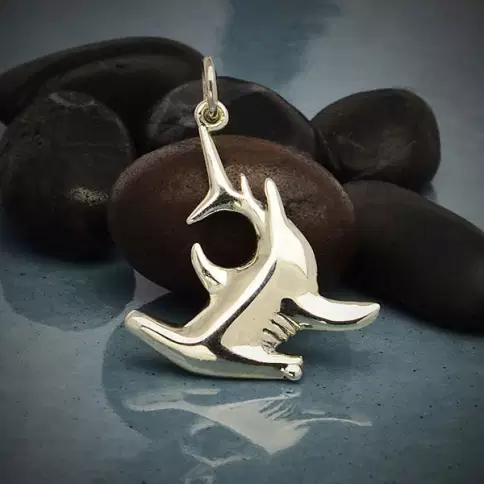 Intricately crafted, our Sterling Silver Hammerhead Shark Charm celebrates the unique beauty of these majestic creatures. Hammerheads play a vital role in marine ecosystems, indicating ocean health and helping maintain balance. Wear this charm as a tribute to their importance in preserving the vitality of our oceansEach purchase supports sustainability efforts while adding a touch of marine magic to your collection.